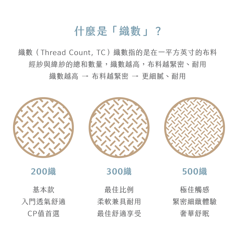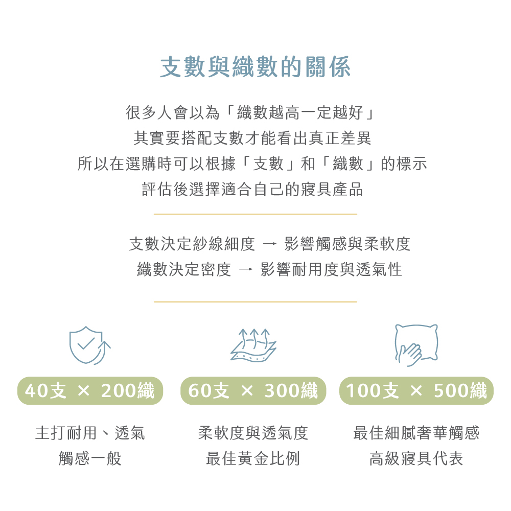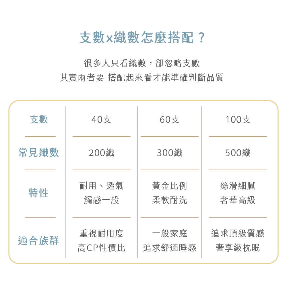 選購寢具時,常會看到「40支/60支」、「200織/300織」這些專有名詞