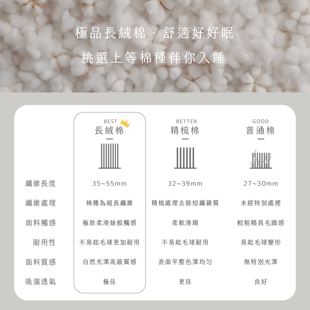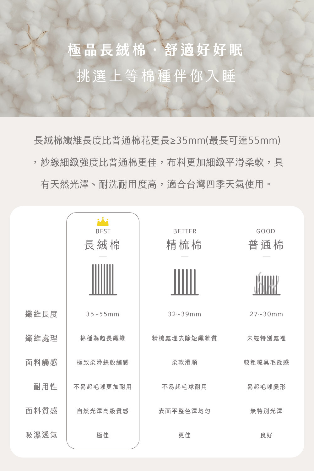▪️ 60S高織密長絨棉 觸感柔順親膚