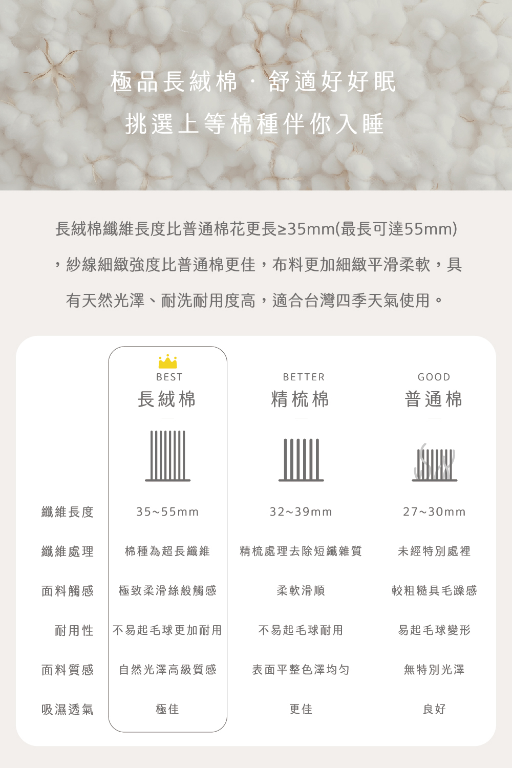 ❤️ 纖維細緻|極選高品質產棉區