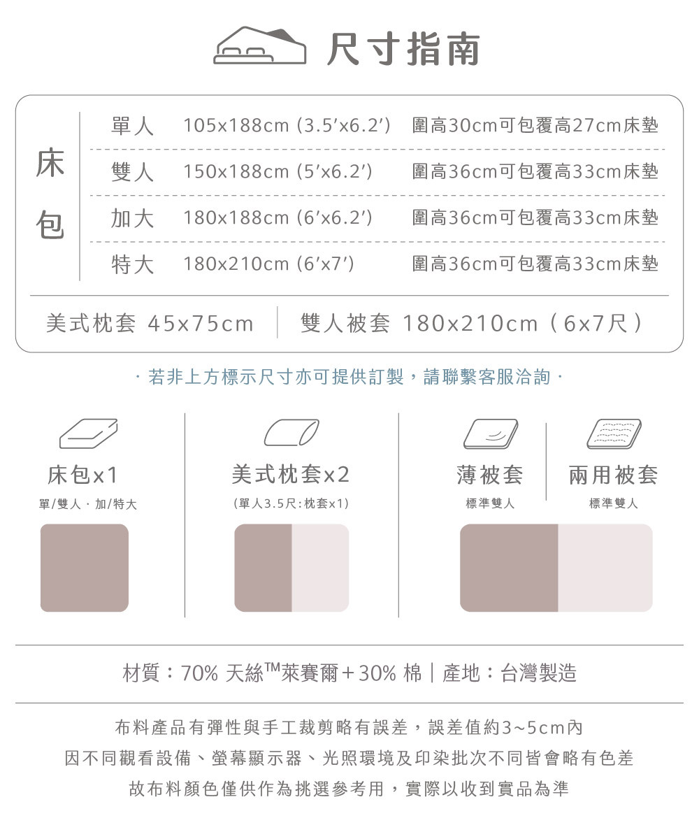 ✅ 淺色天絲寢具屬敏感色系,應避免與深色衣物(如牛仔褲)長時間摩擦接觸,以防移染。