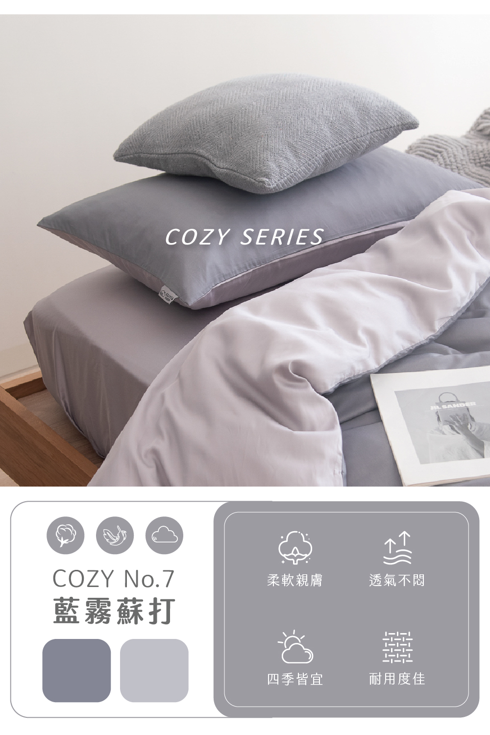 【OLIVIA】COZY No.7|60支【藍霧蘇打】蘭精天絲™ Micro Lyocell 超細旦纖維X長絨棉