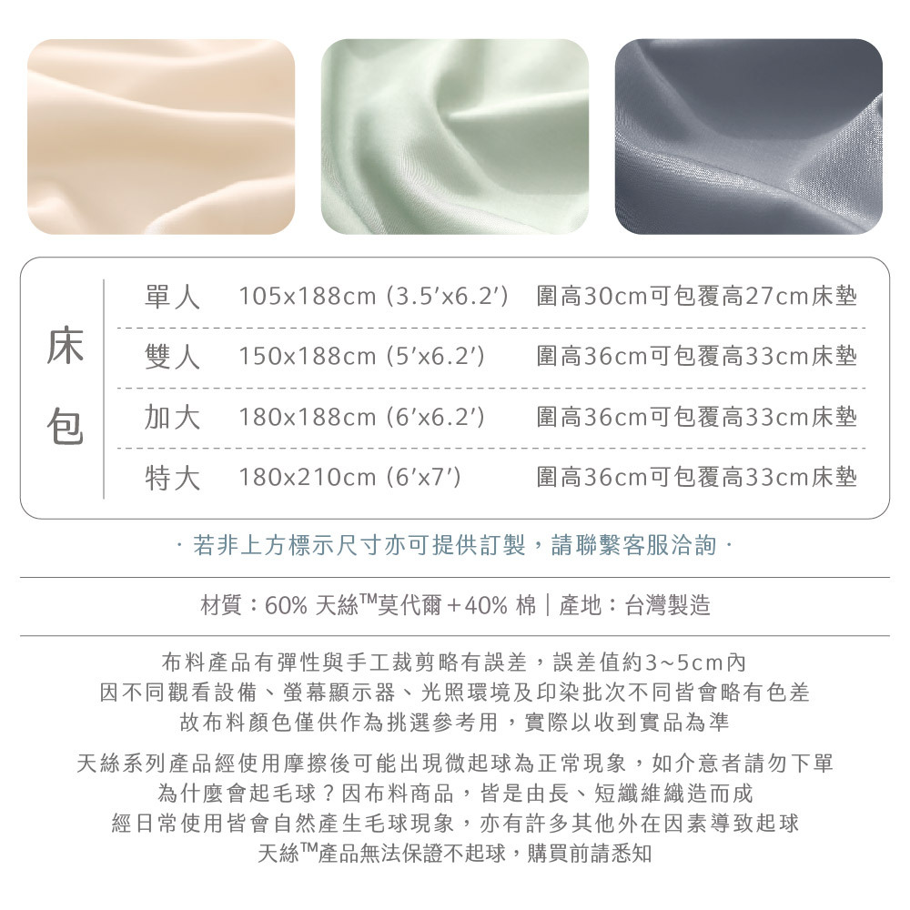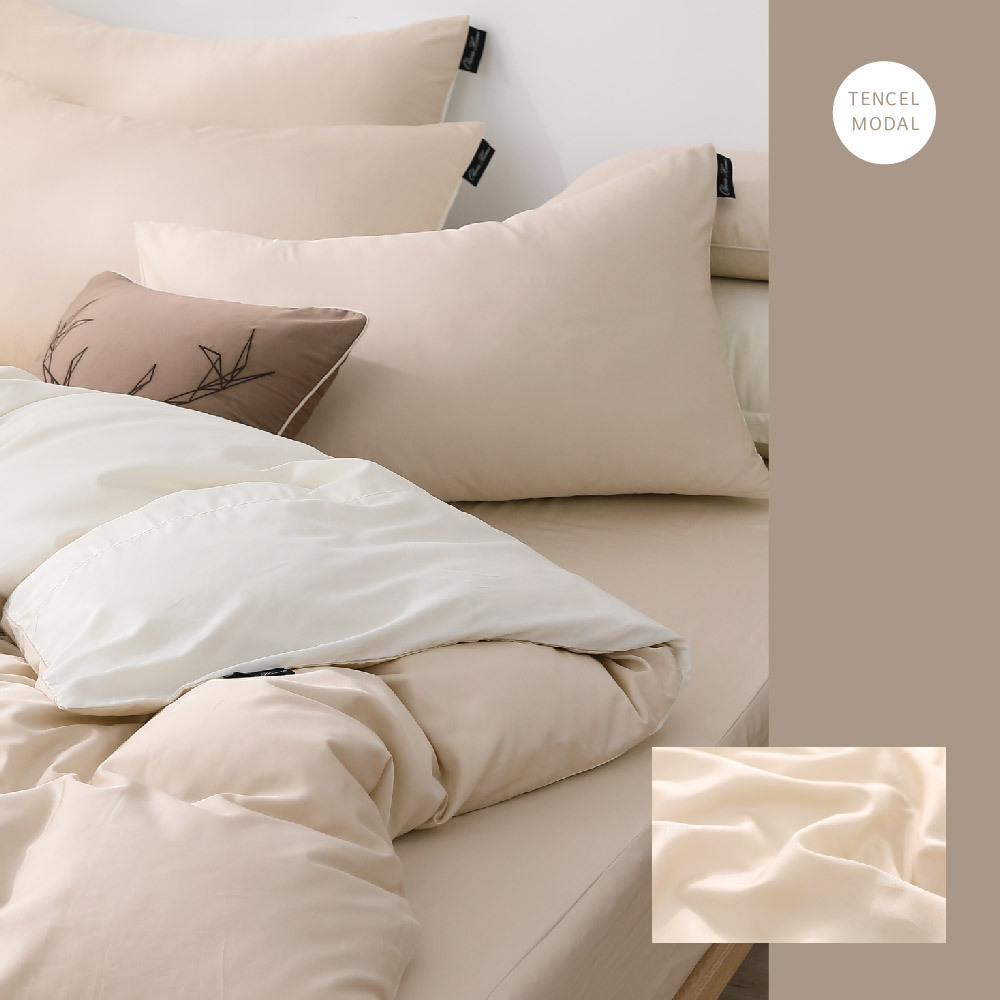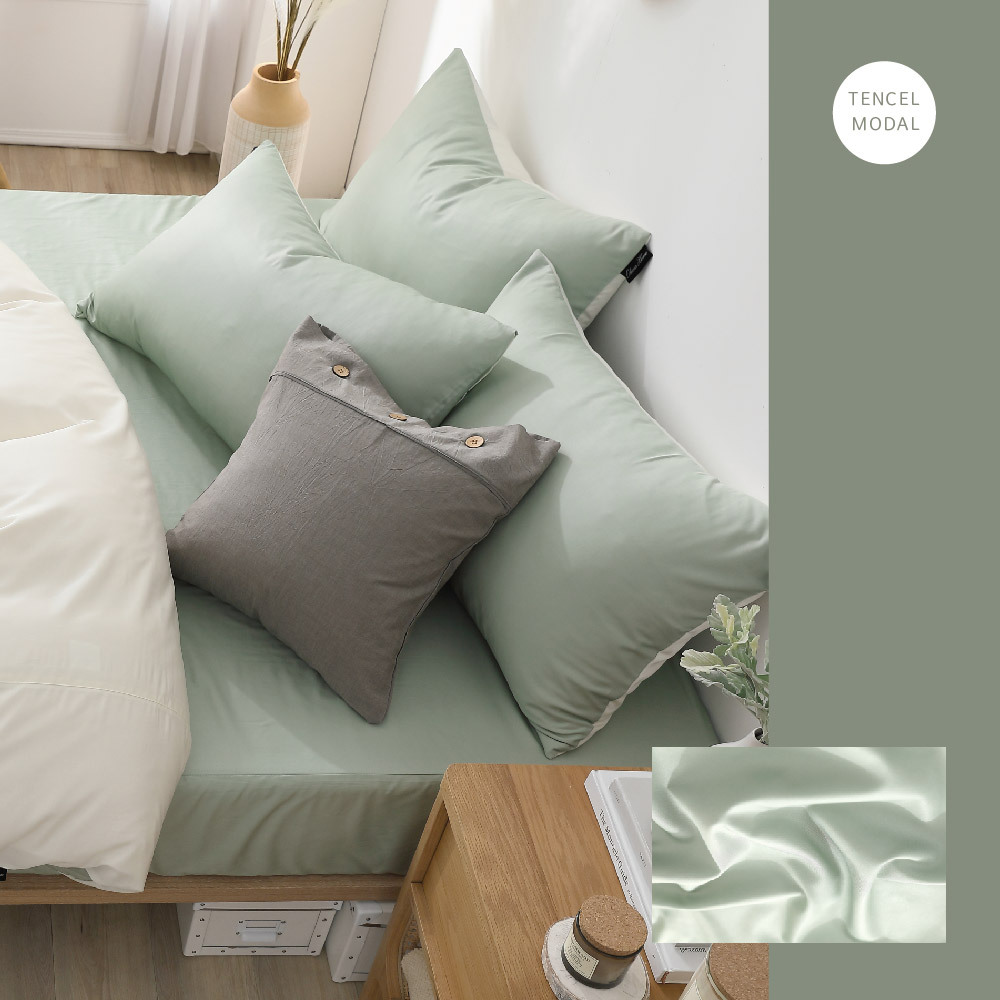 ✅ 淺色天絲寢具屬敏感色系,應避免與深色衣物(如牛仔褲)長時間摩擦接觸,以防移染。