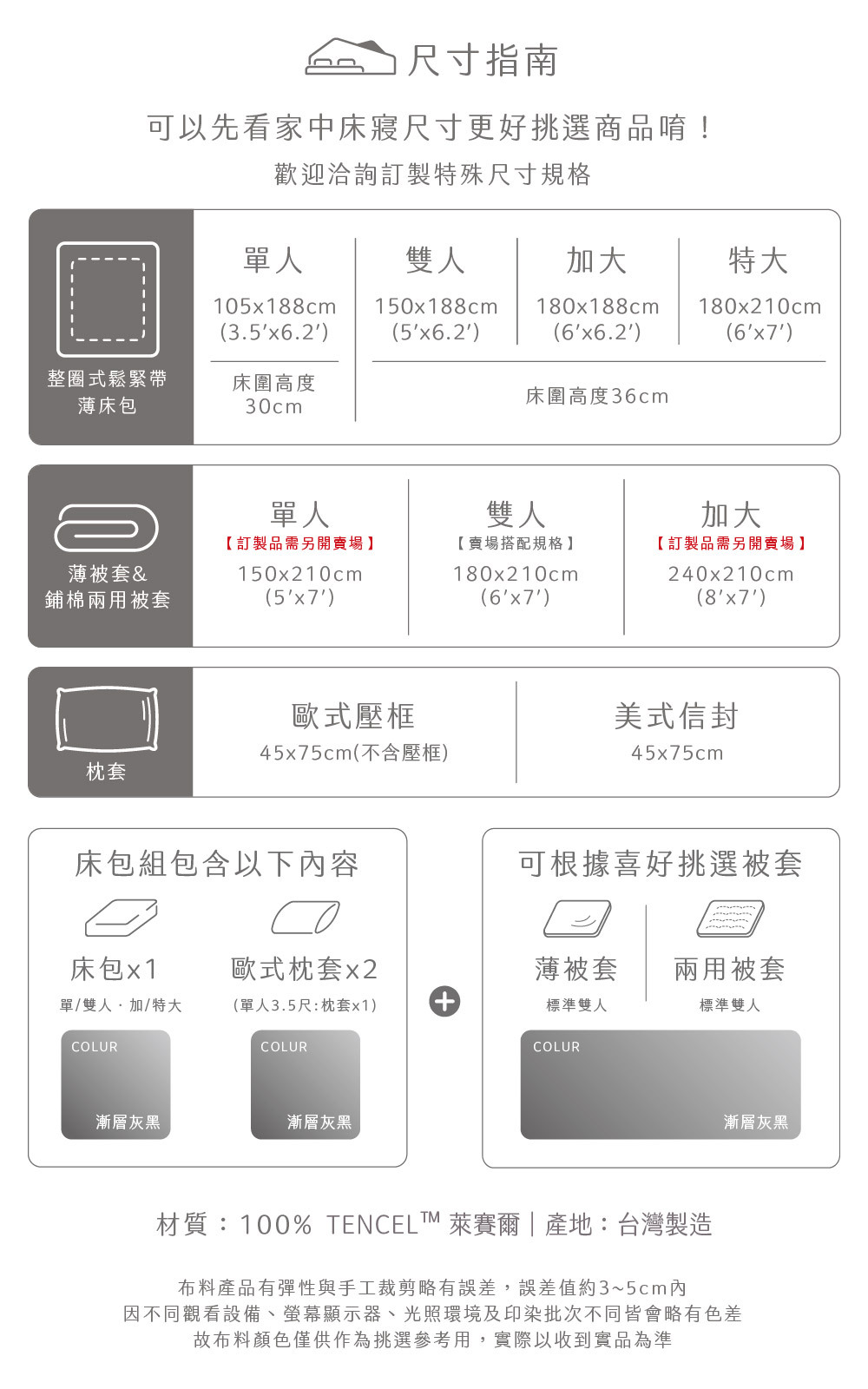 ✅ 淺色天絲寢具屬敏感色系,應避免與深色衣物(如牛仔褲)長時間摩擦接觸,以防移染。