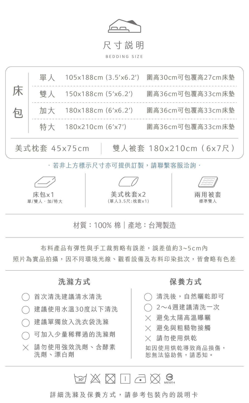 ❖ 床包、被套提供客戶訂製尺寸服務,請洽詢客服