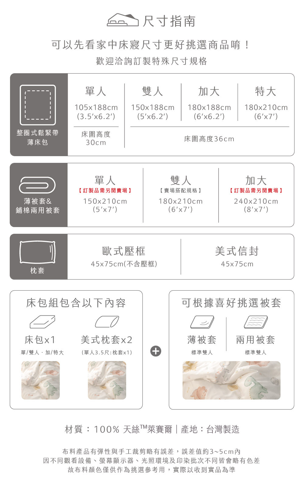 ✅ 淺色天絲寢具屬敏感色系,應避免與深色衣物(如牛仔褲)長時間摩擦接觸,以防移染。