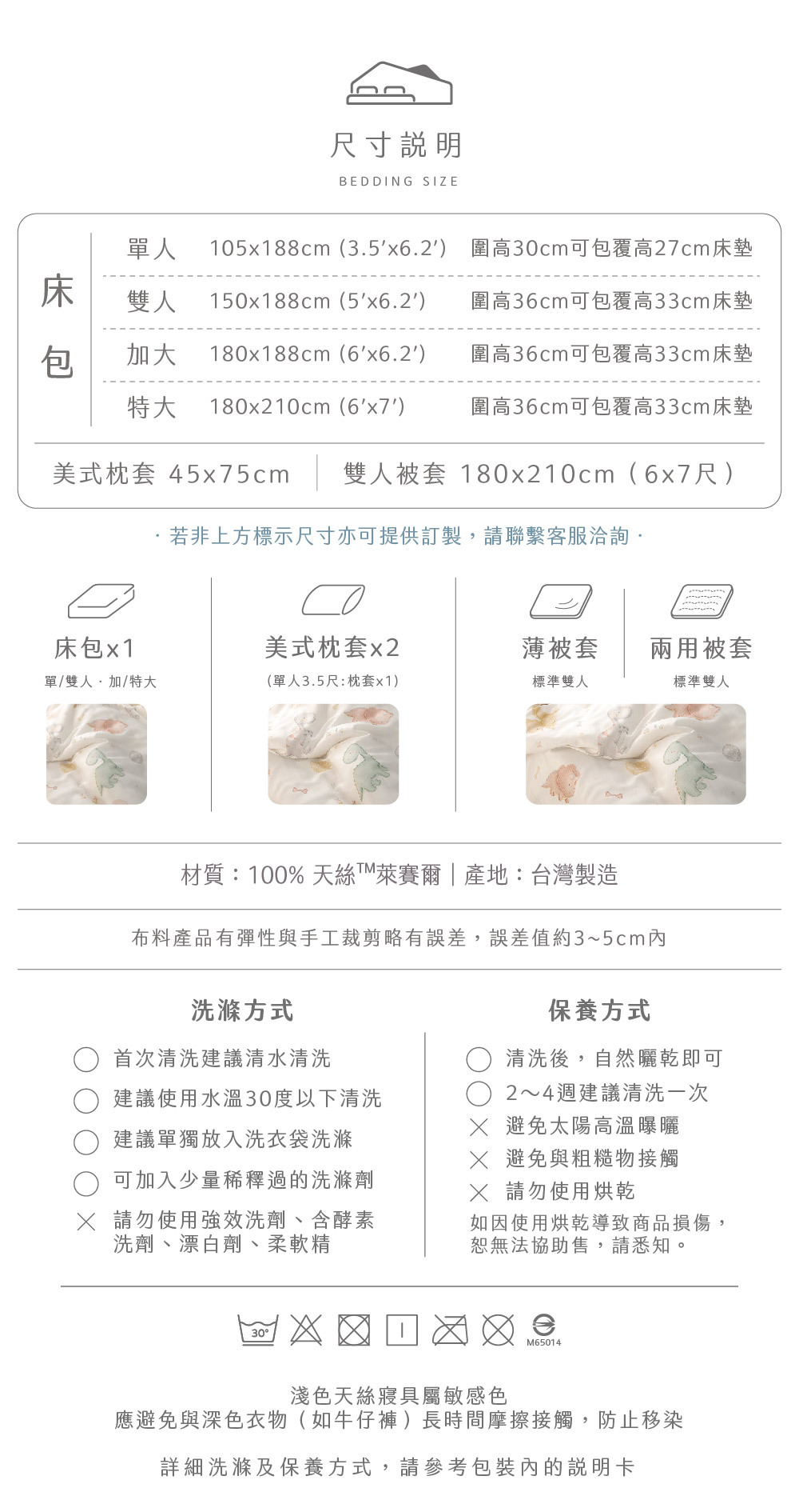 ✅ 淺色天絲寢具屬敏感色系,應避免與深色衣物(如牛仔褲)長時間摩擦接觸,以防移染。