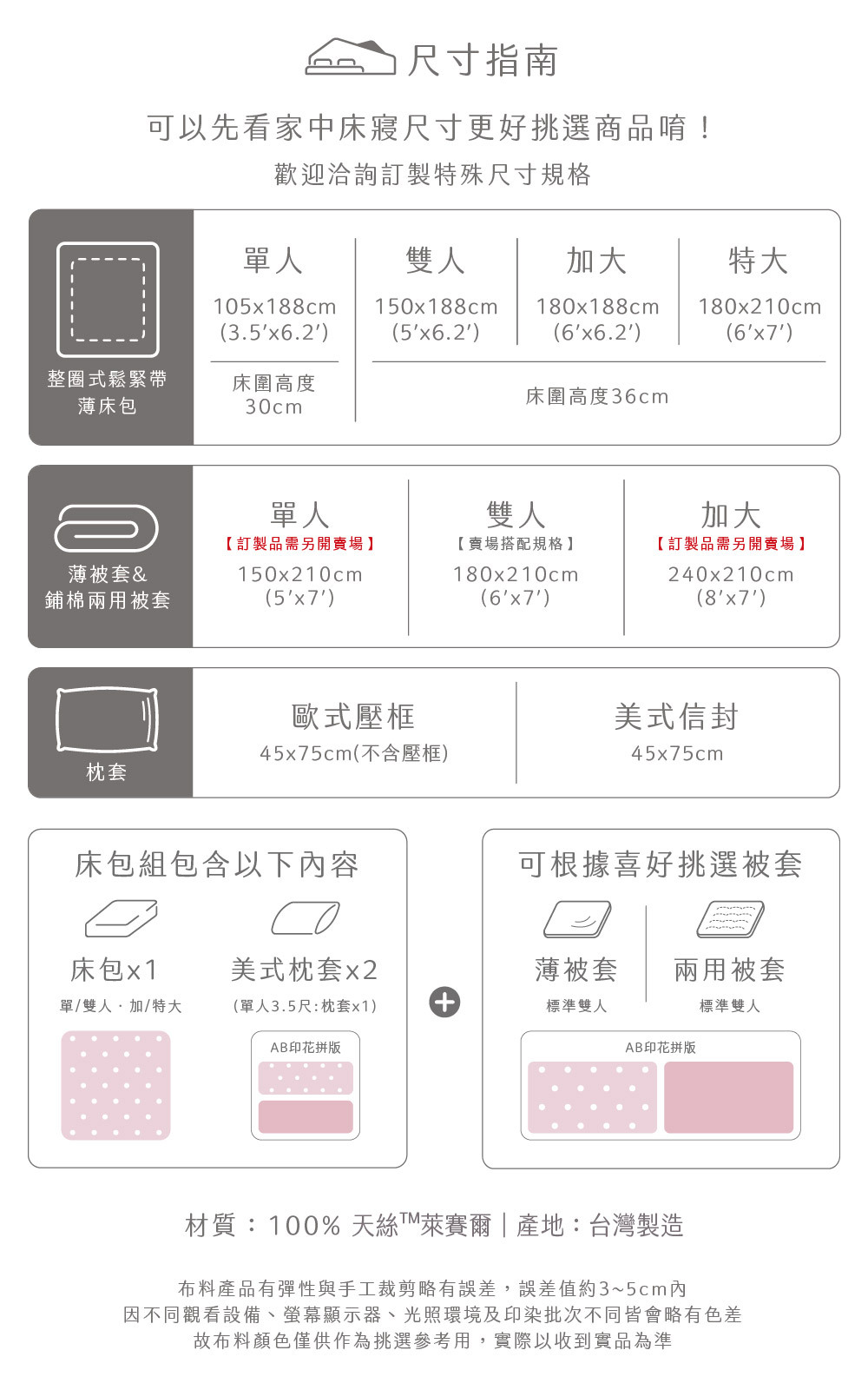 ✅ 淺色天絲寢具屬敏感色系,應避免與深色衣物(如牛仔褲)長時間摩擦接觸,以防移染。