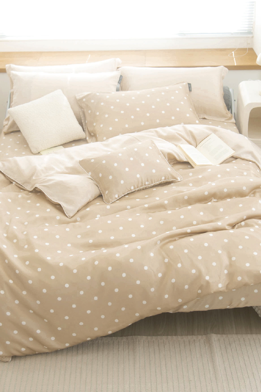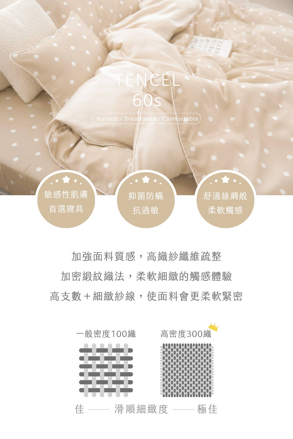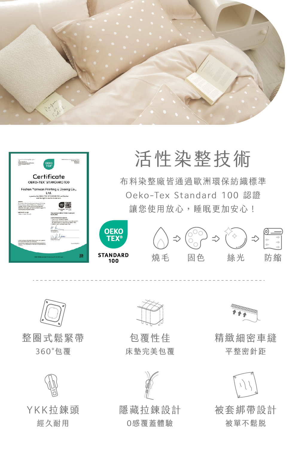 ✅ 淺色天絲寢具屬敏感色系,應避免與深色衣物(如牛仔褲)長時間摩擦接觸,以防移染。