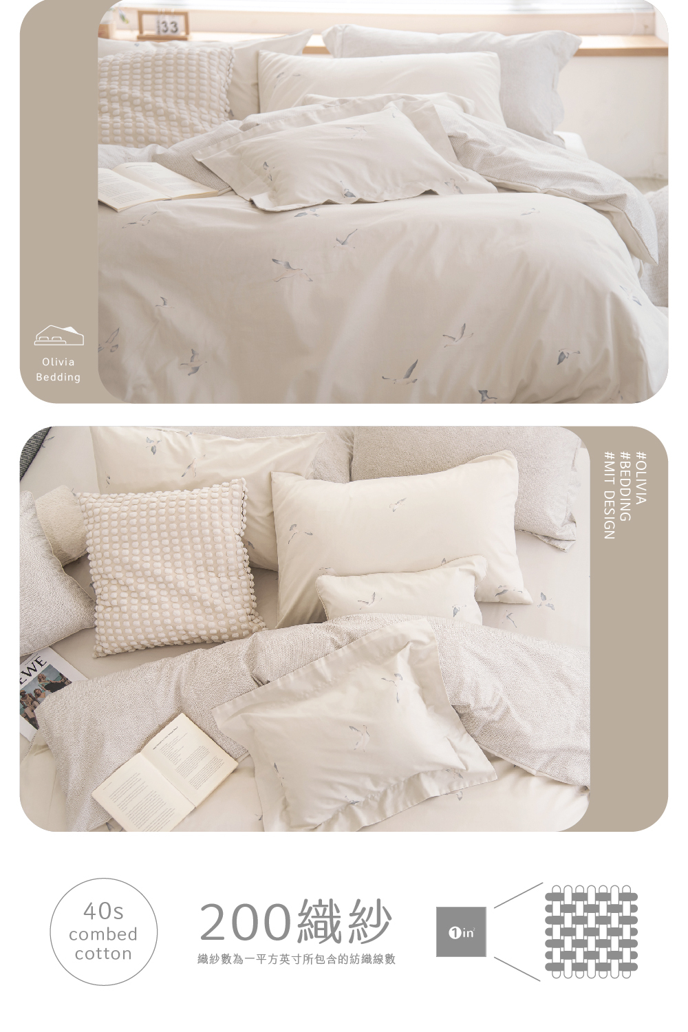 【OLIVIA】寧海之鷗|40支【米梨】100%精梳純棉|DR850