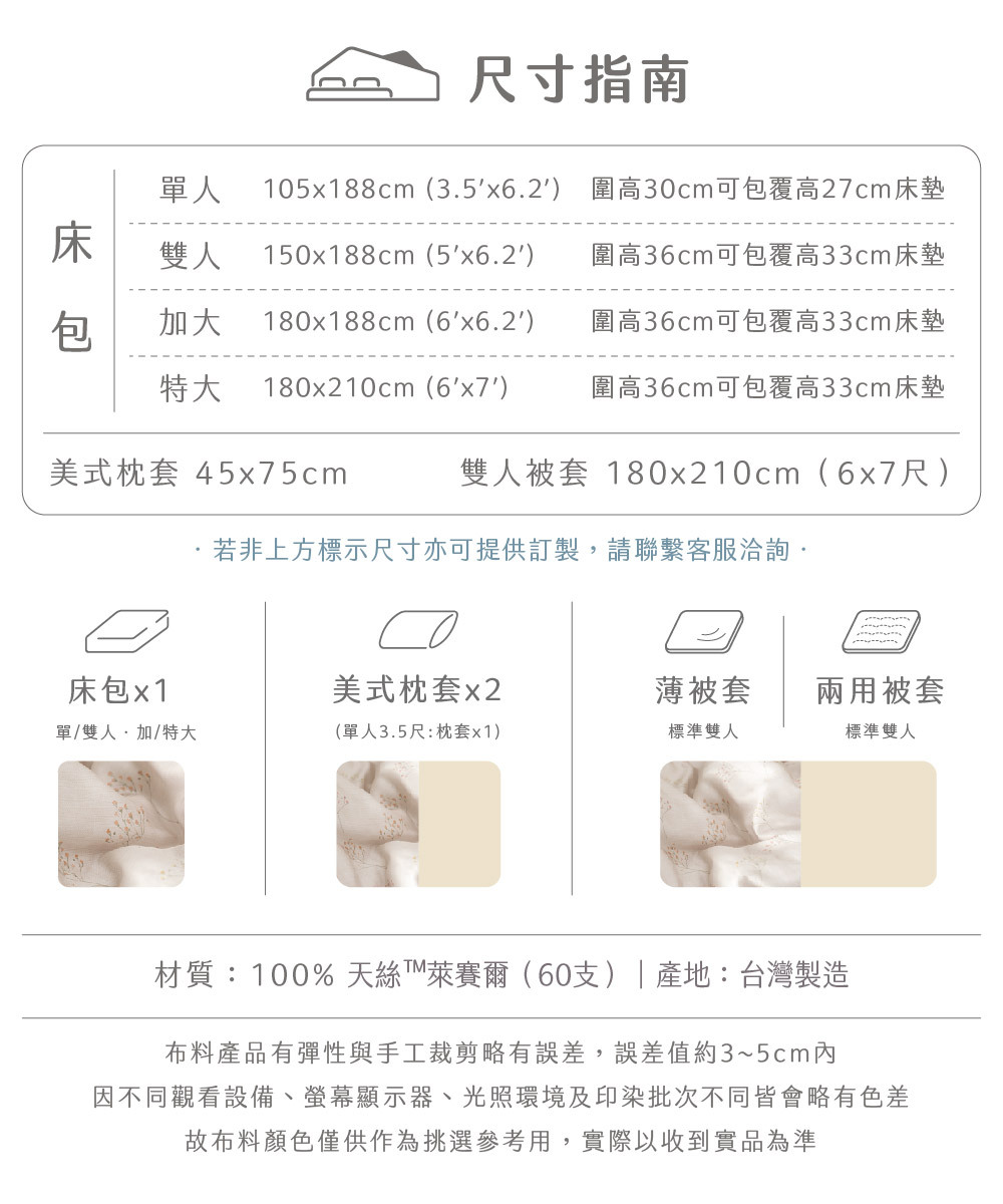 天絲材質細緻,接觸粗糙物易產生勾紗與毛羽,為正常現象,非瑕疵。