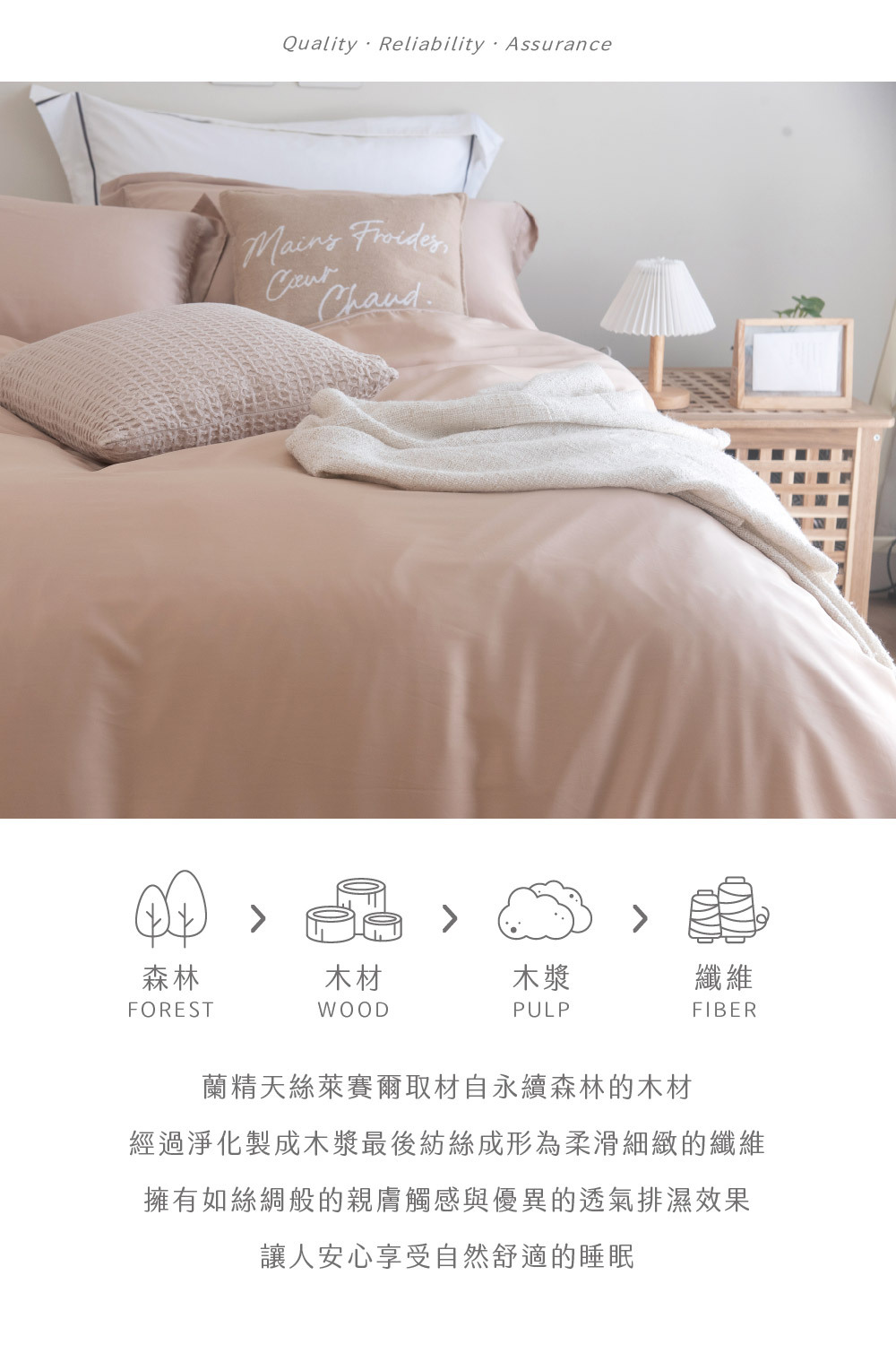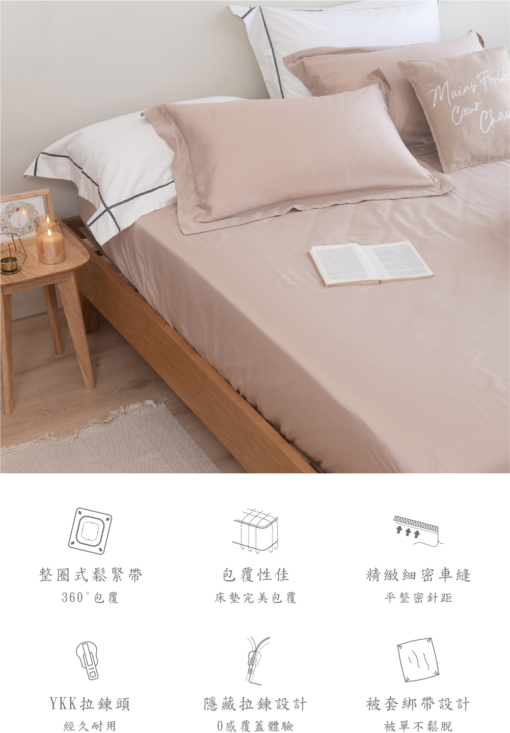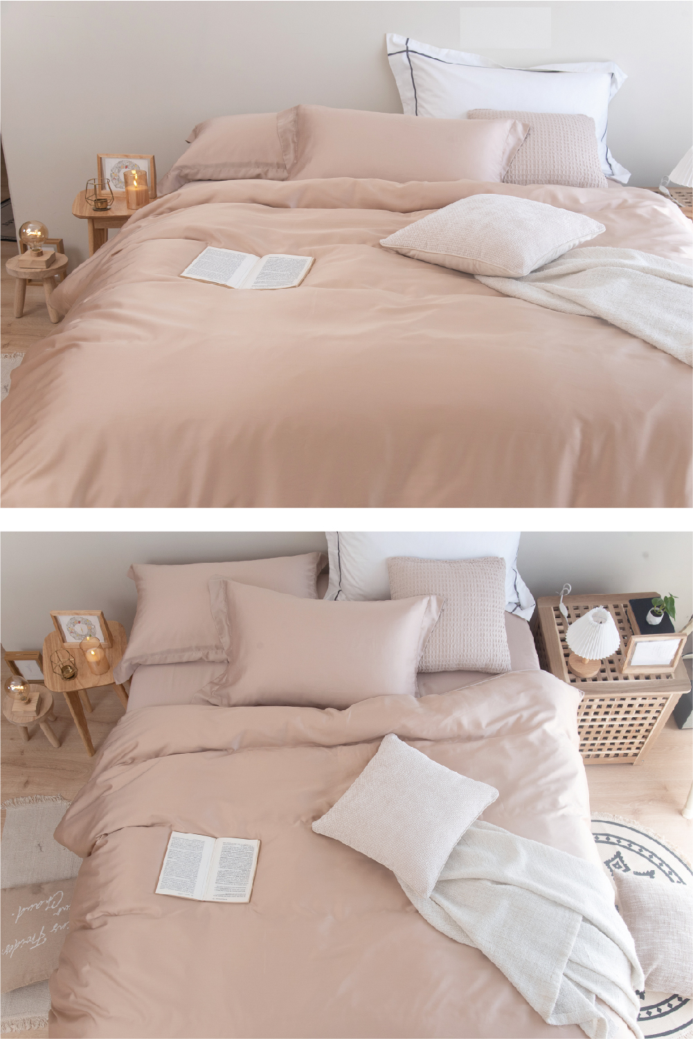 ✅ 淺色天絲寢具屬敏感色系,應避免與深色衣物(如牛仔褲)長時間摩擦接觸,以防移染。