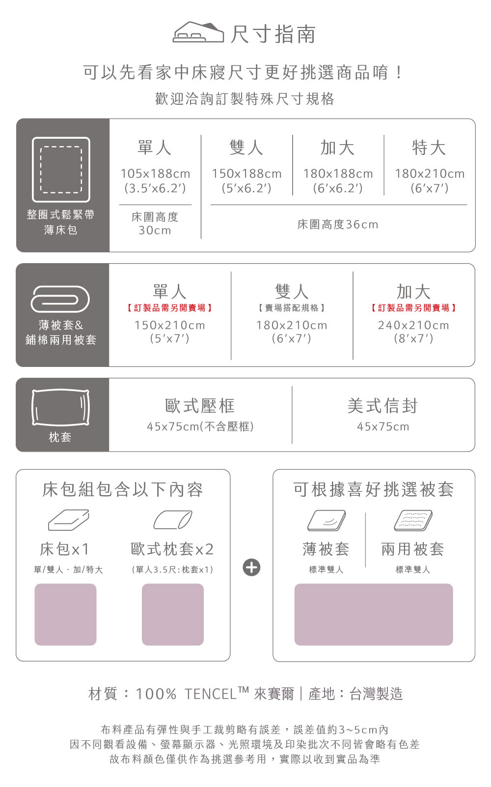 天絲材質細緻,接觸粗糙物易產生勾紗與毛羽,為正常現象,非瑕疵。