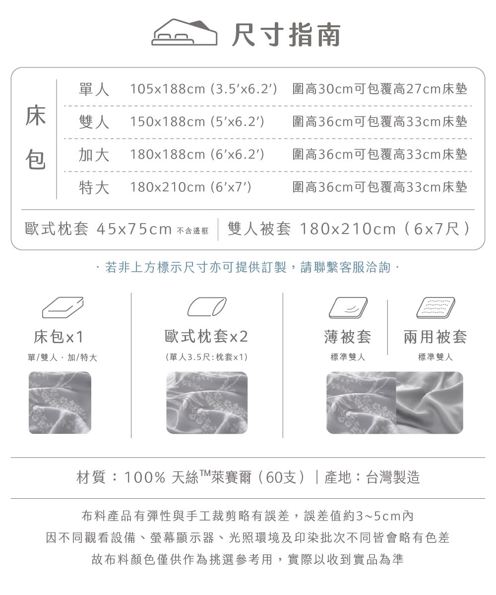 ✅ 淺色天絲寢具屬敏感色系,應避免與深色衣物(如牛仔褲)長時間摩擦接觸,以防移染。