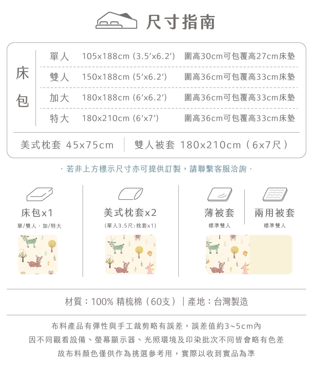 🔥台灣窄幅布料(加大/特大等尺寸床包需接布製作)(雙人被套也需接邊製作)