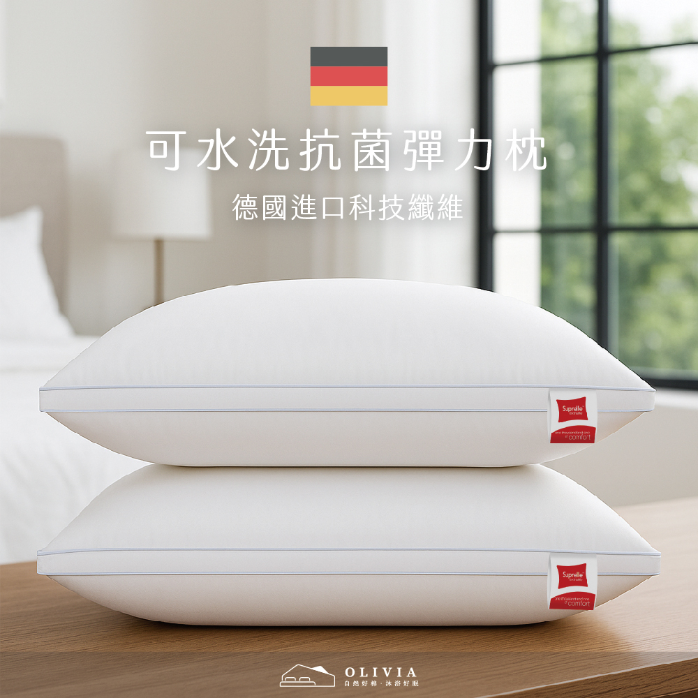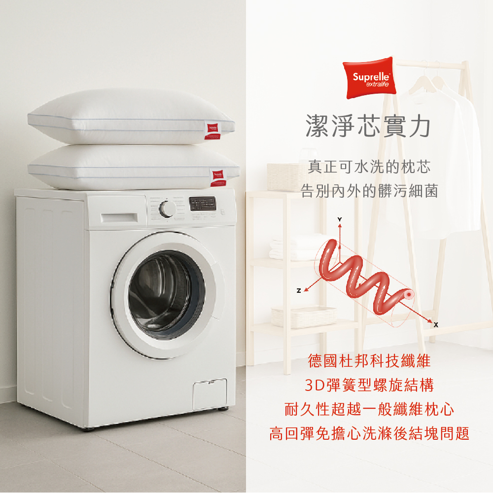 💧 整顆枕芯可水洗|抗菌防蟎潔淨如新