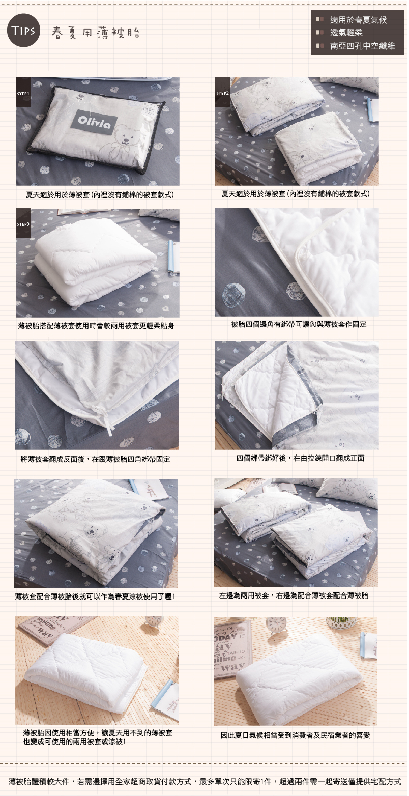 ■搭配薄被套使用,可作夏天的涼被使用