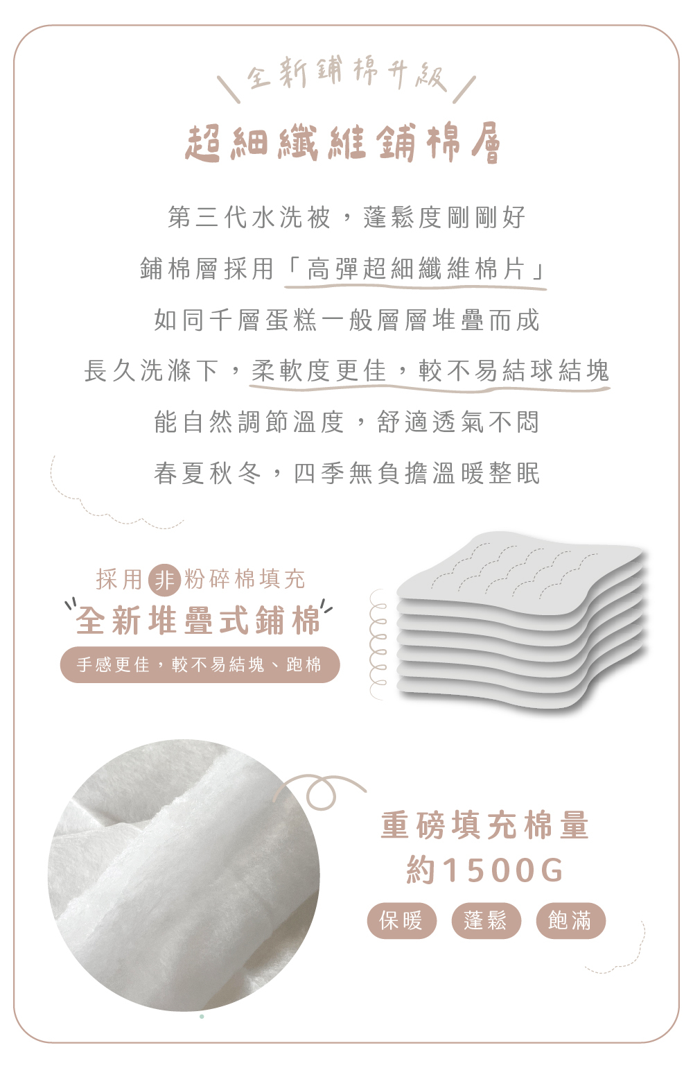 第三代四季水洗被 👉 升級超細鋪棉纖維