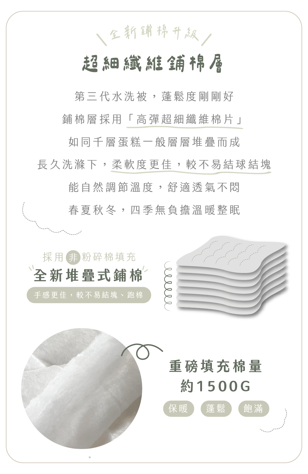 第三代四季水洗被 👉 升級超細鋪棉纖維