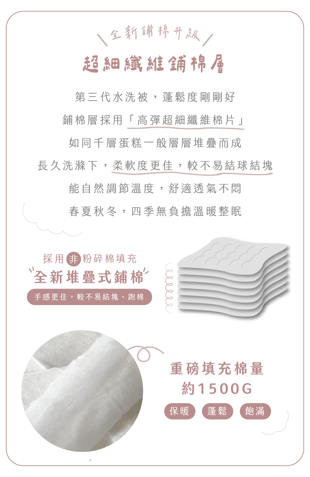 第三代四季水洗被 👉 升級超細鋪棉纖維