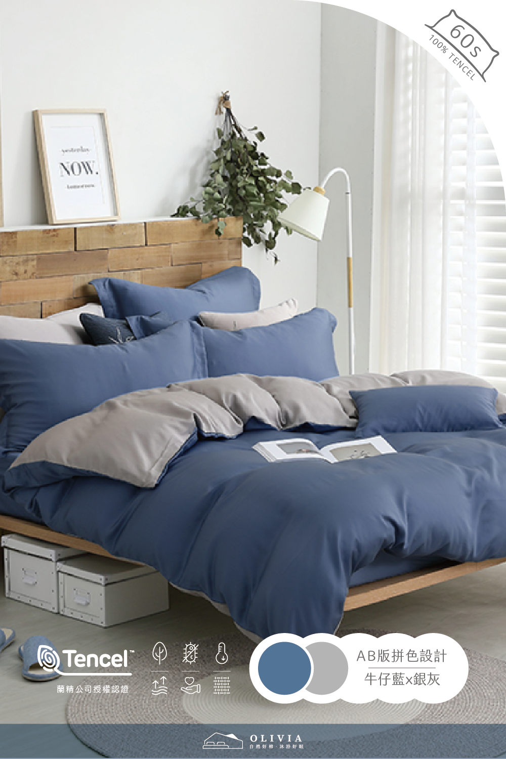 【OLIVIA】雙拼玩色|60支【牛仔藍x銀灰】特級天絲|TL2000