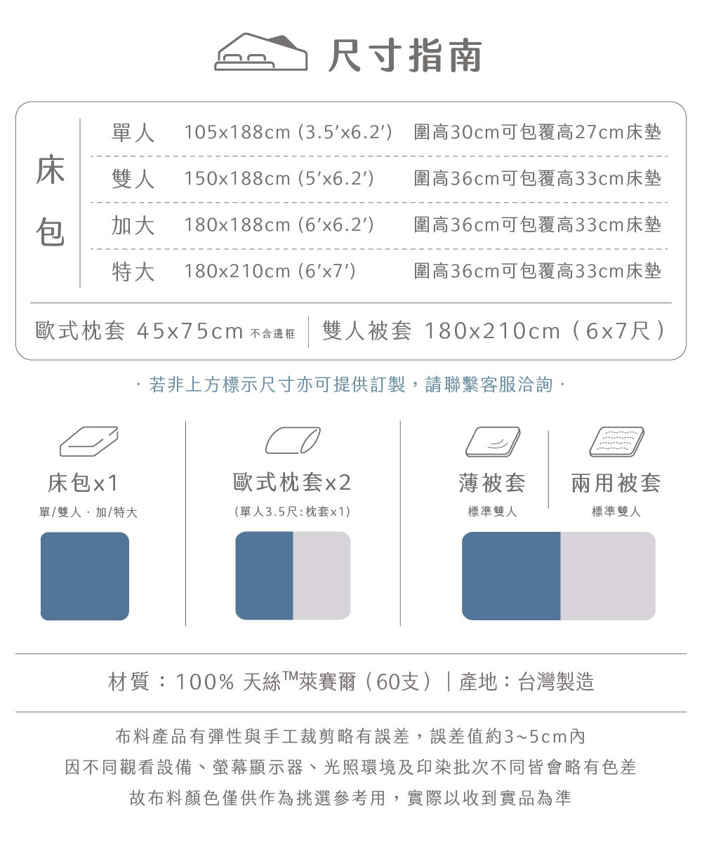 ✅ 淺色天絲寢具屬敏感色系,應避免與深色衣物(如牛仔褲)長時間摩擦接觸,以防移染。