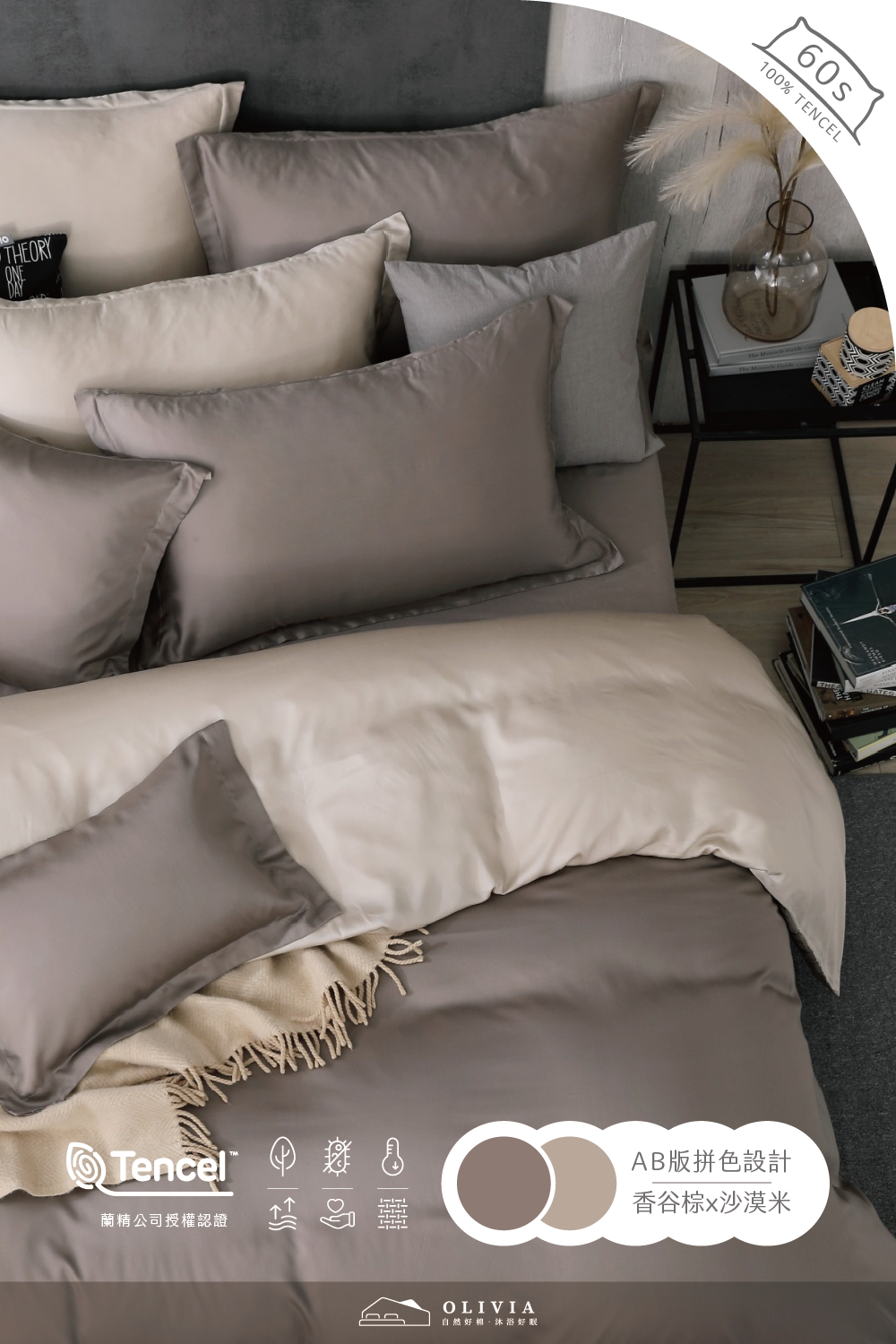 【OLIVIA】雙拼玩色|60支【香谷棕x沙漠米】特級天絲|TL2000