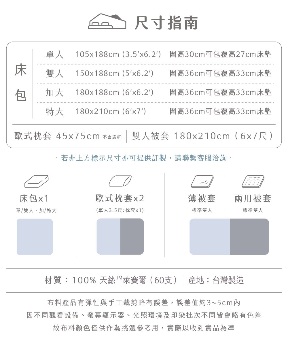 ✅ 淺色天絲寢具屬敏感色系,應避免與深色衣物(如牛仔褲)長時間摩擦接觸,以防移染。