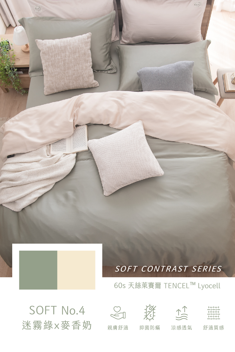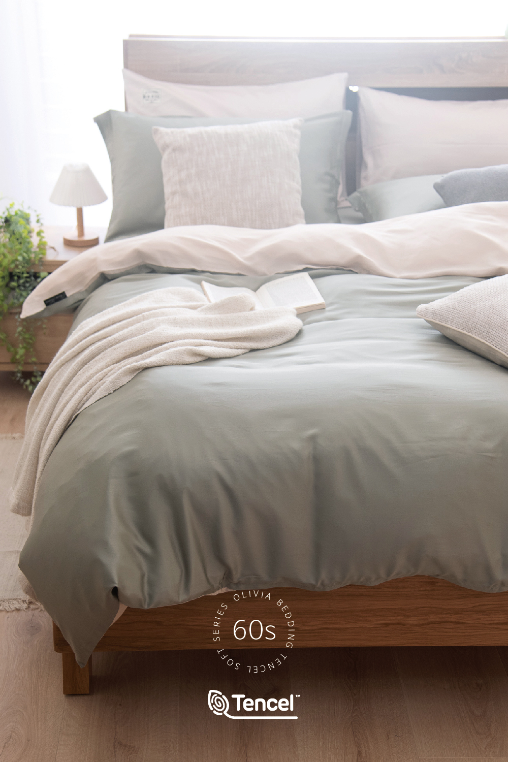 【OLIVIA】雙拼玩色|60支【迷霧綠x麥香奶】特級天絲|No.4