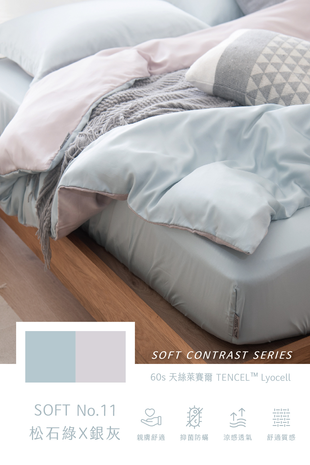 【OLIVIA】雙拼玩色|60支【松石綠x銀灰】特級天絲|No.11