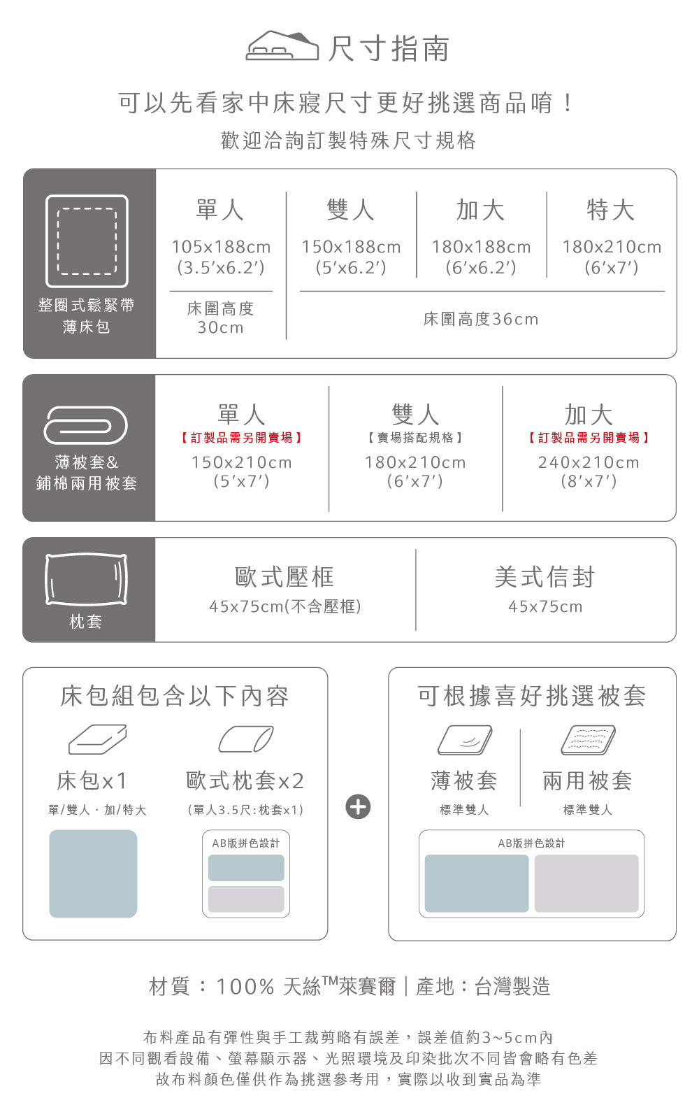 ✅ 淺色天絲寢具屬敏感色系,應避免與深色衣物(如牛仔褲)長時間摩擦接觸,以防移染。