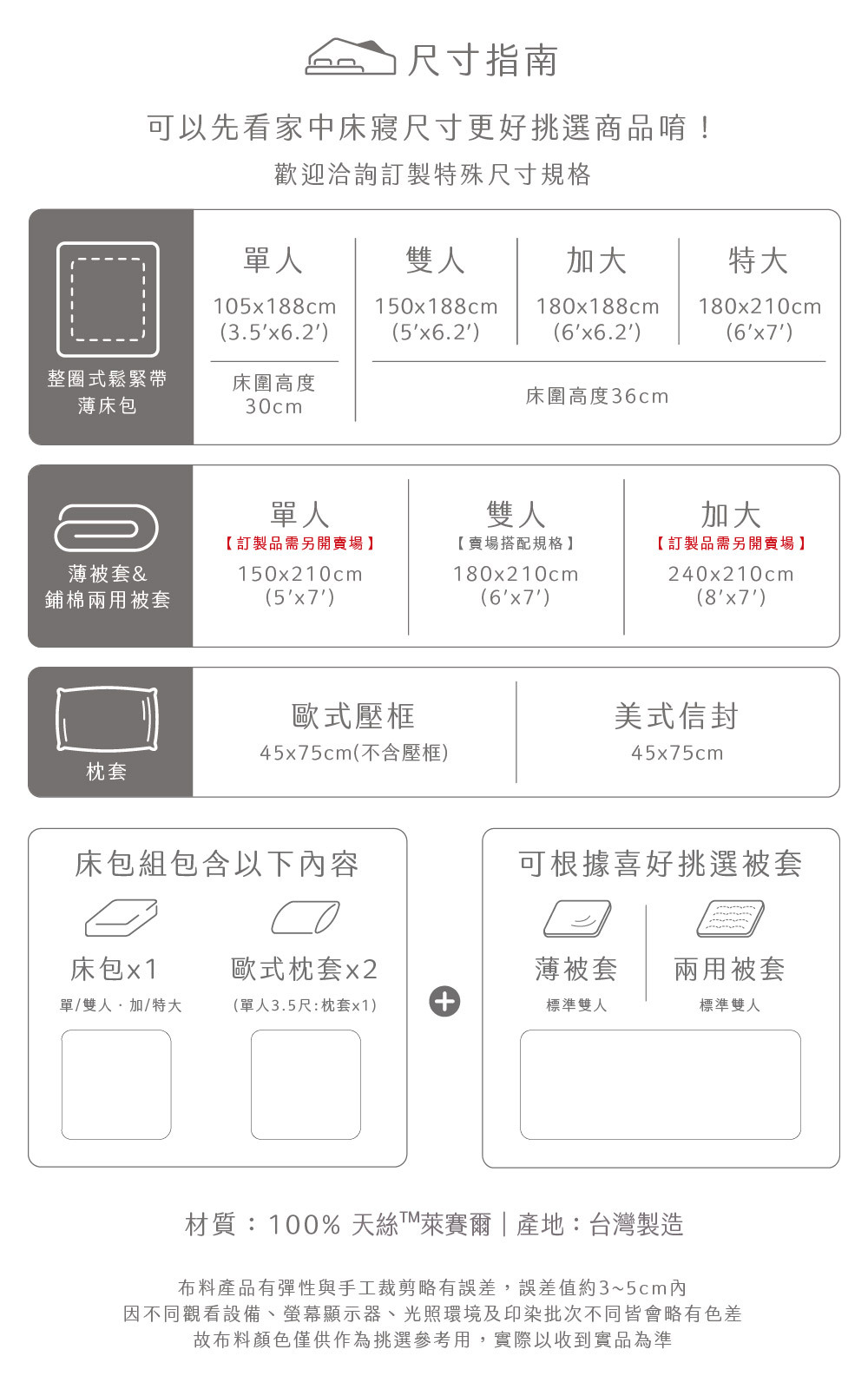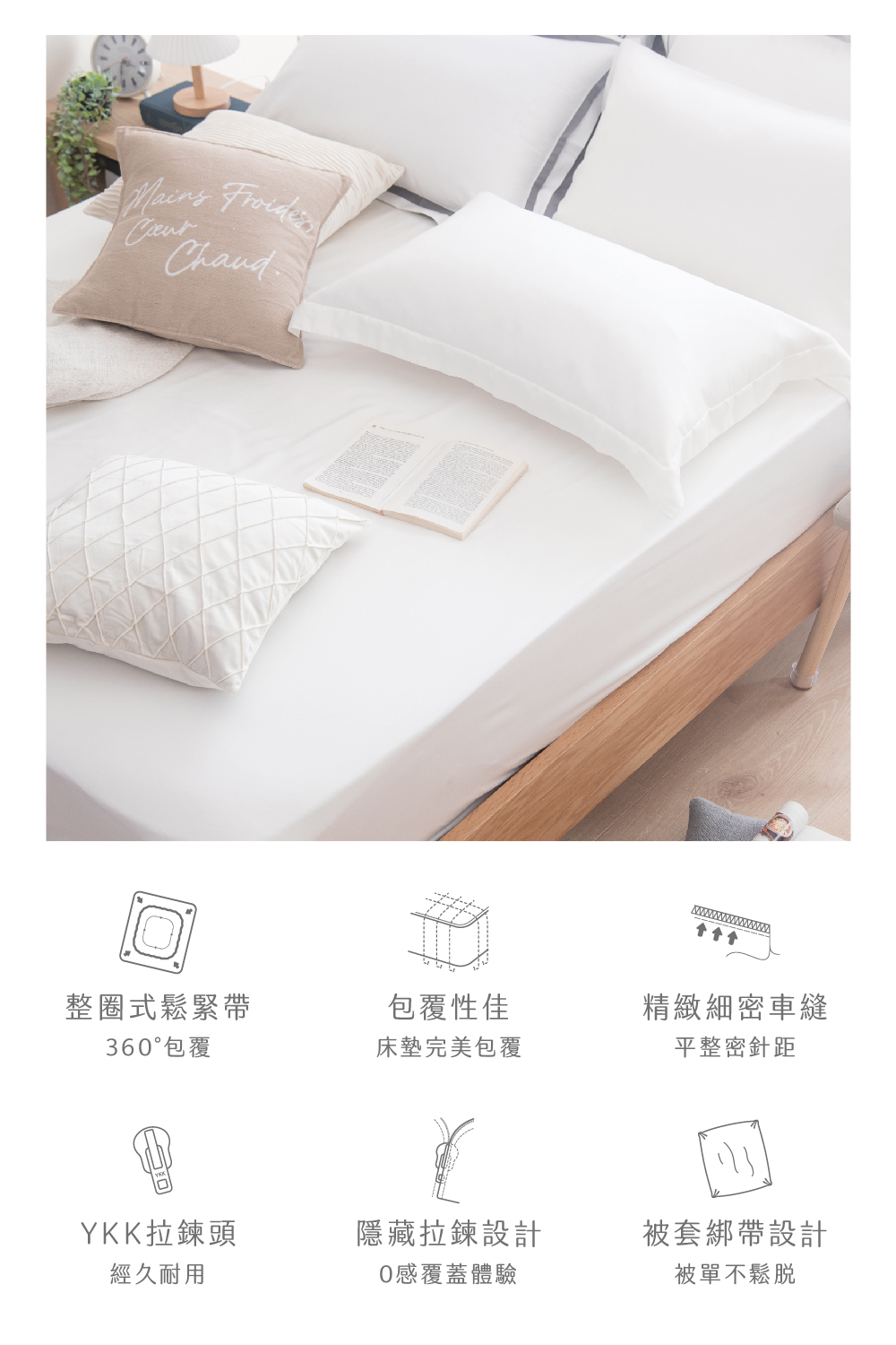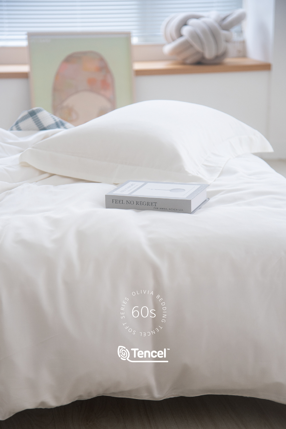 ✅ 淺色天絲寢具屬敏感色系,應避免與深色衣物(如牛仔褲)長時間摩擦接觸,以防移染。