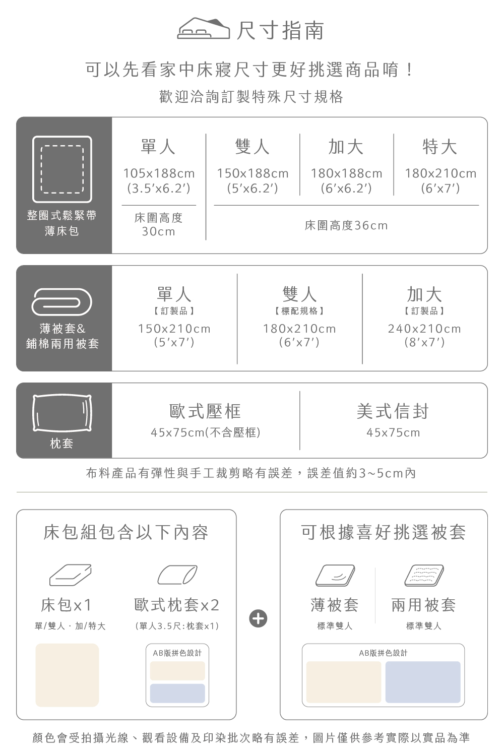 ✅ 淺色天絲寢具屬敏感色系,應避免與深色衣物(如牛仔褲)長時間摩擦接觸,以防移染。