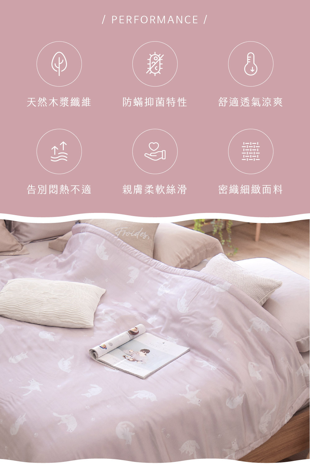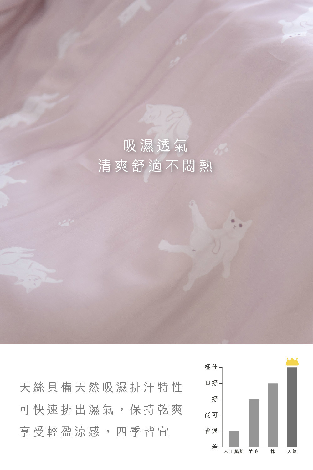 ✅ 淺色天絲寢具屬敏感色系,應避免與深色衣物(如牛仔褲)長時間摩擦接觸,以防移染。
